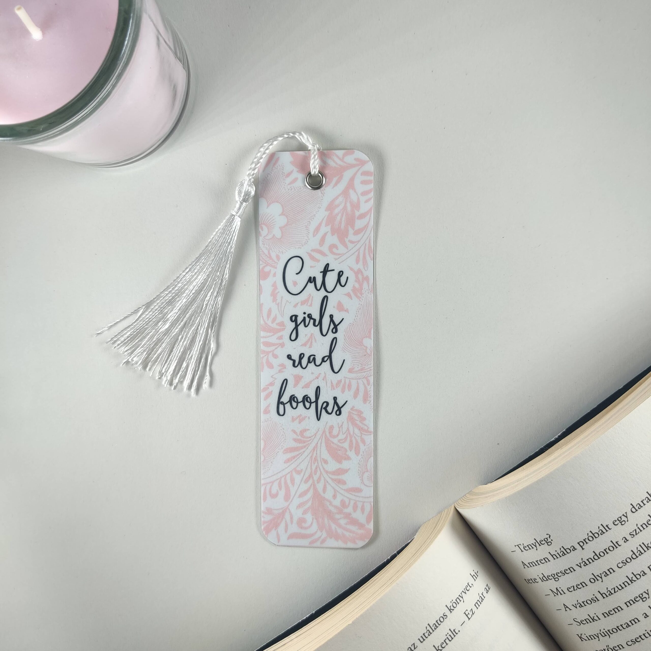 200 grammos papírból készült, laminált könyvjelző, rojttal díszítve.