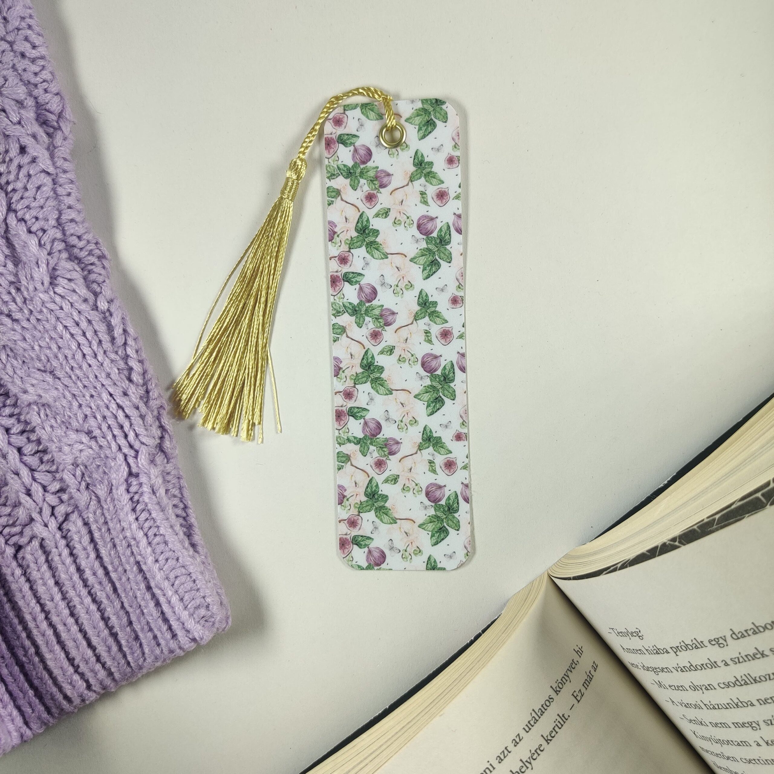 200 grammos papírból készült, laminált könyvjelző, rojttal díszítve.